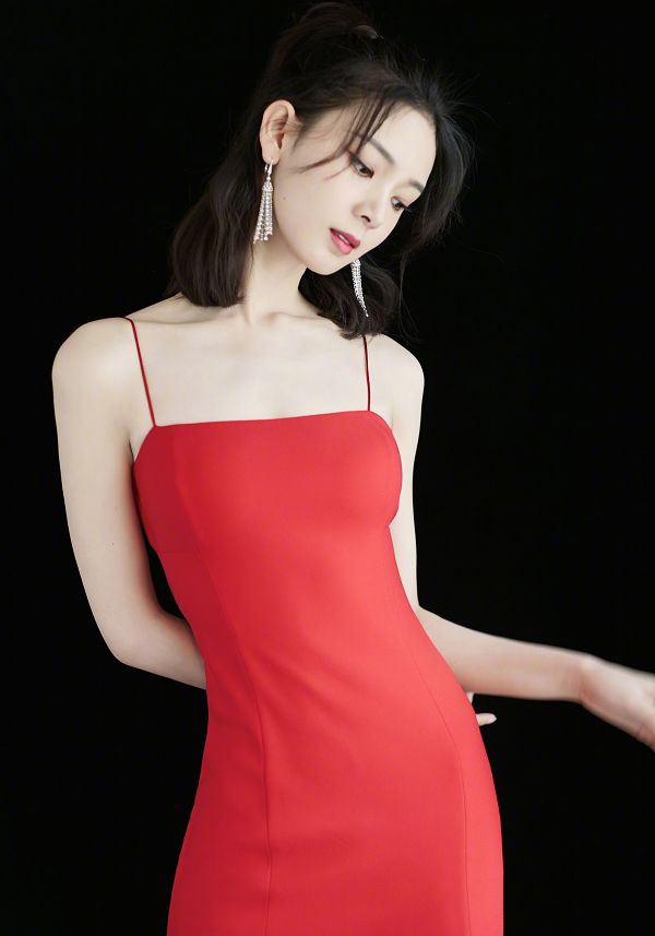 这一身红色吊带裙看起来十分优雅性感,收身的设计做的十分贴切,像是量身定做一般,超级美艳动人,这根细细的吊带看起来十分性感,雪白的肌肤超级迷人,露出好看的锁骨和天鹅颈,这样的陈瑶实在是太性感了!