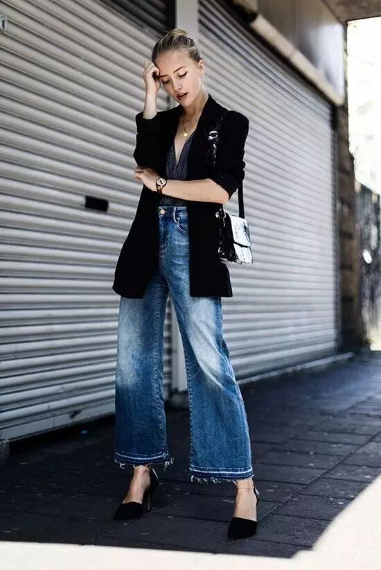 西装外套搭配直筒牛仔裤,不仅看不出粗腿,竟然还可以这么显腿长!