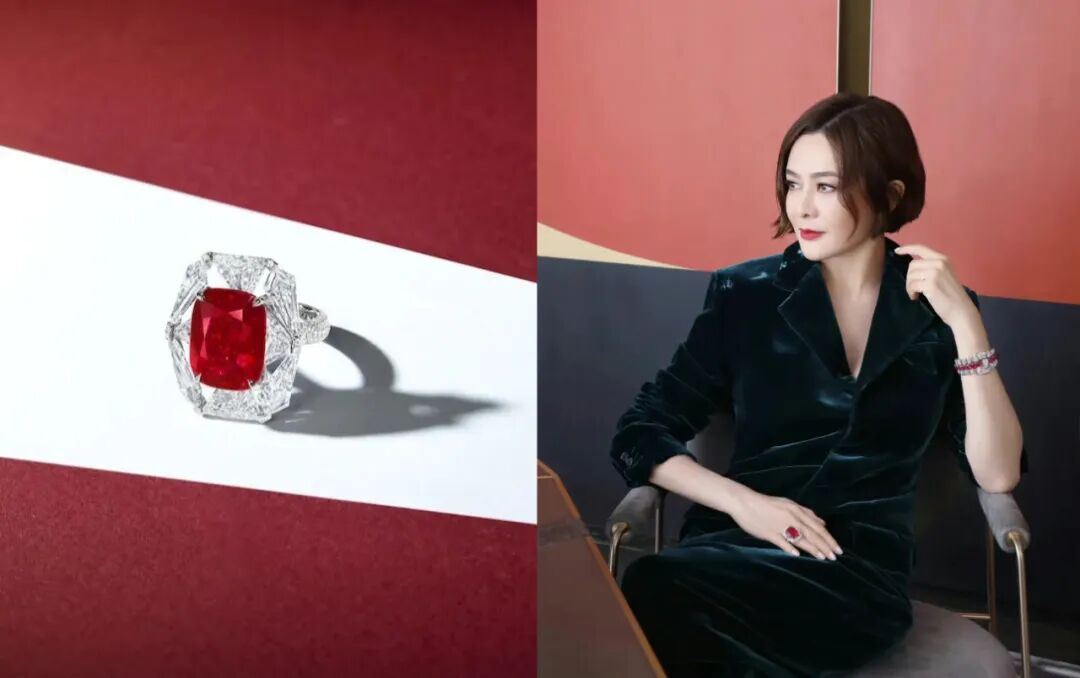 这次关之琳拿出来拍卖的珠宝中,有一枚12.64克拉的缅甸天然红宝石及钻石戒指,最低估价2200万港币。
