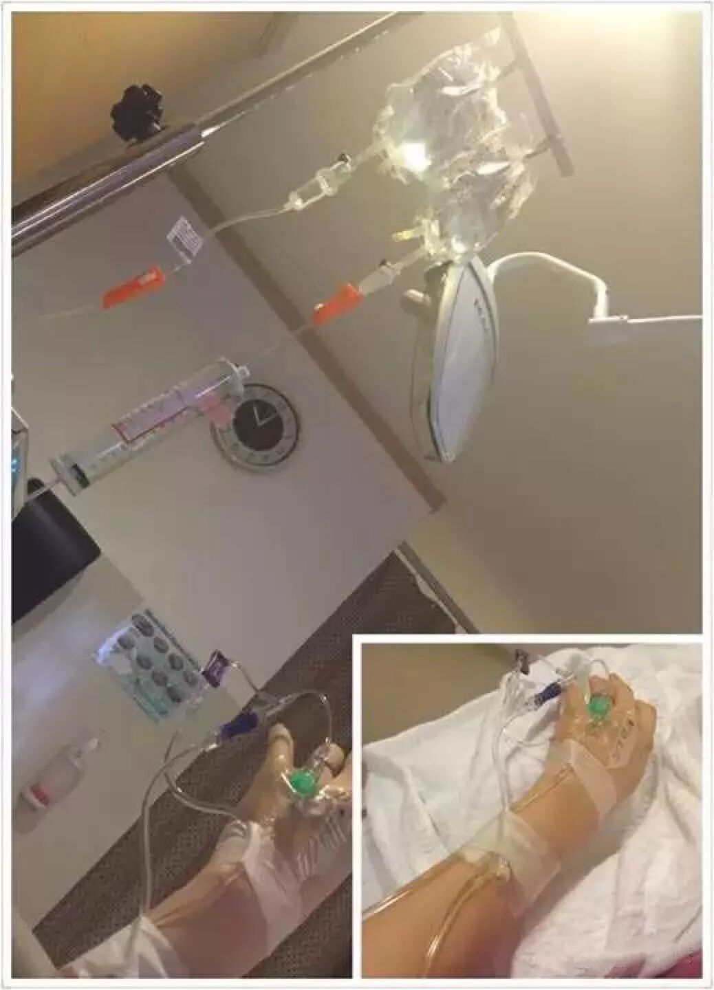 一次徐若瑄打针后却忘了按压,血从针眼处流了1个小时,当她发现后,血液已经透过两层裤子,还染红外层的毛巾。