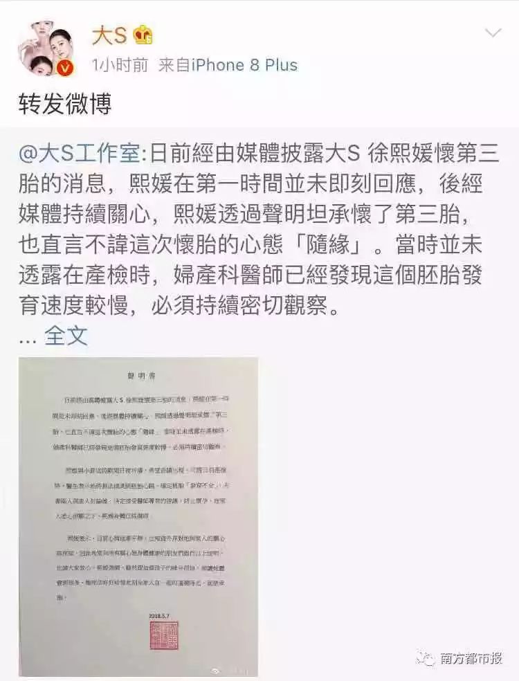 即使作为明星经济条件比普通人好很多,也同样需要承受高龄生产带来的风险。