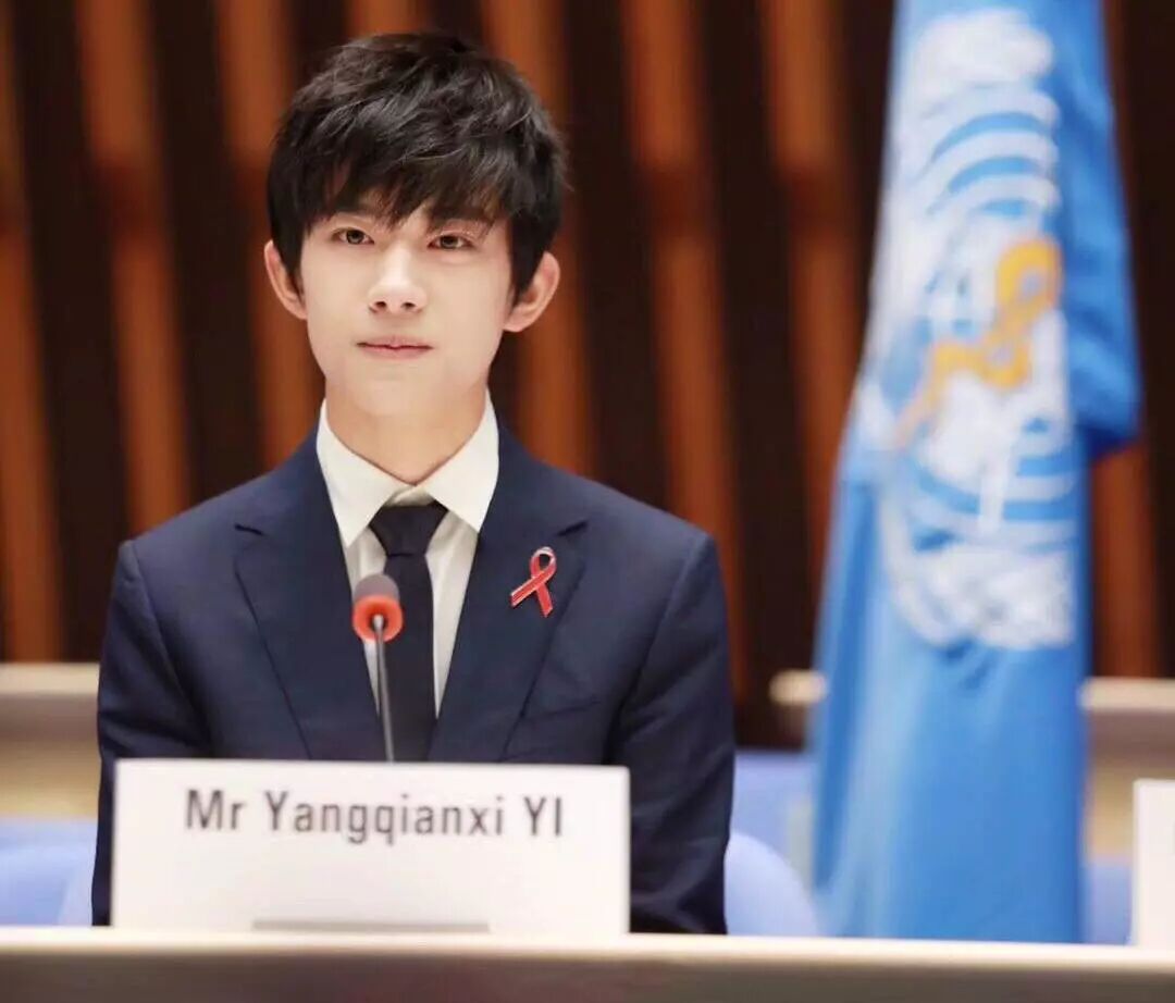 17年的十月,易烊千玺受世界卫生组织总干事谭德赛博士的邀请,作为中国青年代表亮相日内瓦世卫总部。