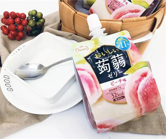 Tarami的这款果冻一袋32至43卡路里不等,含有5%的食物纤维,足够满足一个成年人的食物纤维摄取量。夏天天气热不想吃饭,嘴里又总觉得缺点什么,我有时候就会拿它作为代餐,美味又营养,也不用担心发胖。