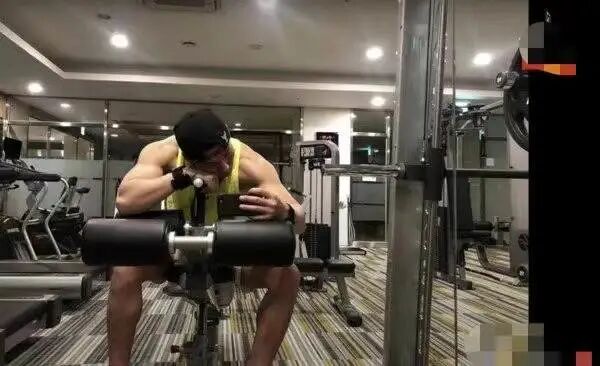 另一张是崔智友老公在健身房的自拍照,看他满身的腱子肉,估计没少锻炼身材。