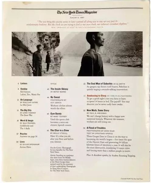 在夺取对《纽约时报周刊》的“胜利”之后,曾年每次都背着那台定制的617旅游,越拍越喜欢。那时“摄影”、“照片”还不算值钱的玩意,满街都是柯达、富士之类的东西。后来有更多杂志跟他约拍。1997年,他为《德国地理杂志》(德国 Geo杂志)工作了数月,并连续刊登三期一共70多个页码。