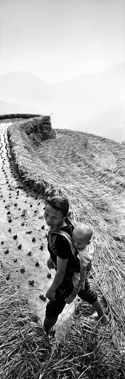 可《纽约时报周刊》当时看到他拍回来的宽幅黑白照片并不满意,做版都做不了。可他当时很坚持,那毕竟是三峡,多难得的镜头啊!“过去就喜欢黑白,现在我倒是无所谓了。”几经周折,美国那边后来最后通过邮件回复他,说他的照片不但带来了明确的信息含量,还有自己独特的艺术眼光。我想起法国《艺术鉴赏》Connaissance des Arts 杂志总编齐柏叶(Guy Boyer)当初第一次见到曾年时回忆说,他沉静单纯,他的微笑毫无芥蒂,他的决心令人称奇。他流露出一种令人毋庸置疑的信念和分明来自另一个世界的天真。他的这个另外的世界不是别处而是真正的中国,那个屹立于高处的中国,那个可以大道至简,放逸自然,可以用审视的眼光超越无碍,纵横无极的中国。“他戴着纯白的手套向我展示三峡题材的照片,那是《纽约时报周刊》十七年前的订单,而现在这个峡谷和她的遗产已经永入水下。……我看见一个真正的艺术家藏在一个新闻摄影师里。”