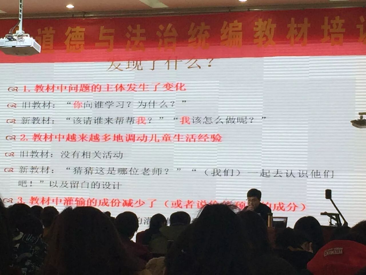 教材编写的根本方针是遵循教育规律,培养有爱心、责任心、具有良好行为习惯和个性品质的儿童,促进小学生以品德为核心的基础文明素质的全面发展。教材以生活徳育论为指导,以具有教育意义的生活事件建构教材内容的"原材料"。单元和课文设计着眼于解决儿童成长中的各种问题,在引导儿童过好当下生活的过程中将国家与社会的要求贯彻进去。章博士的讲座深入浅出,老师们深受启发,上午两个半小时的活动在意犹未尽中结束。