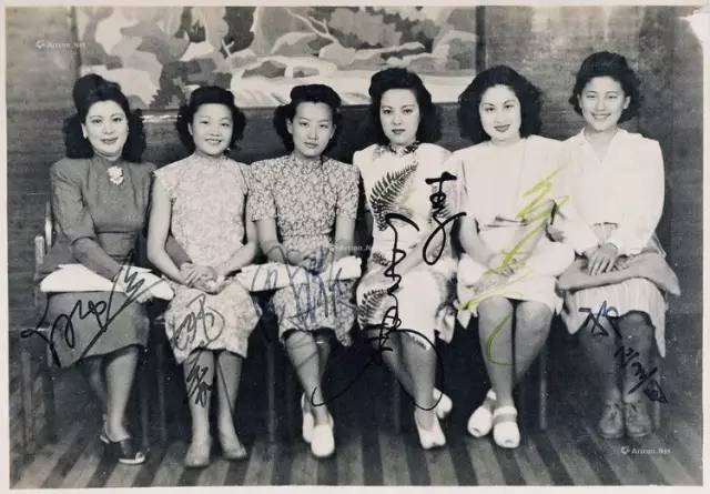 上海滩“七大歌后”中的六位:白虹、姚莉、周璇、李香兰、白光、吴莺音(左起)。龚秋霞不在照片中。