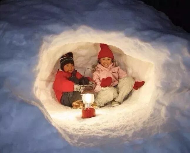 再挖个雪洞,和小伙伴说说悄悄话。