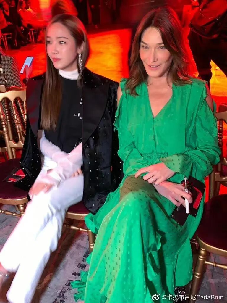 比较破次元的,还数法国前第一夫人Bruni在微博发出跟她的合影。