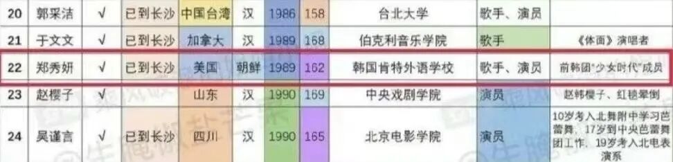 起因是网上流传着一份《浪姐3》的参赛名单,将她标注为朝鲜族: