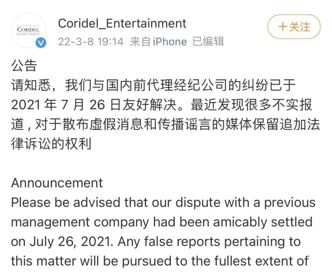 其中香港经纪公司Coridel Entertainment的老板,正是她的男友权宁一。