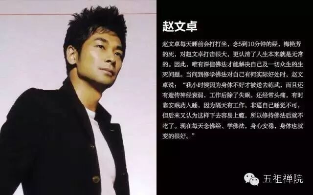 赵文卓说:“我小时候因为身体不好才被送去练武,而且还有遗传神经衰弱,工作后除了失眠,还经常头痛,有时靠安眠药入睡,因为隔天有工作,非逼自己睡觉不可,但后来又认为这样下去容易上瘾,所以修持佛法后就不吃了。现在每天念佛经、学佛法,身心安稳,身体也就变的很好。”