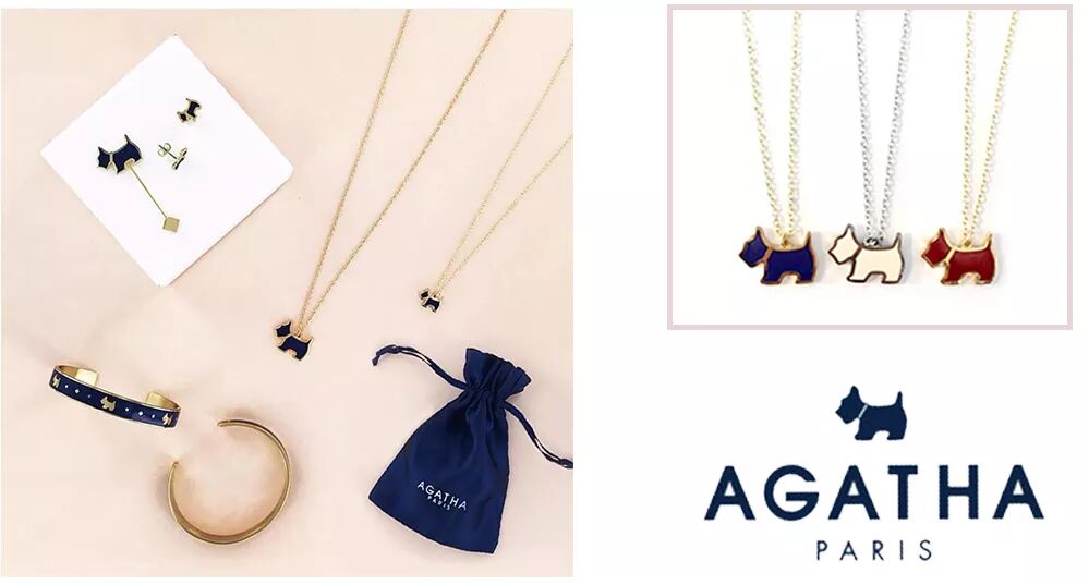AGATHA也来自浪漫的法国,品牌创始人曾经养了一只可爱的苏格兰爹利犬,有一天他无意中画下了狗狗的侧影,做成吊坠随手送给朋友当作礼物,却没想到一下子火爆了全球。