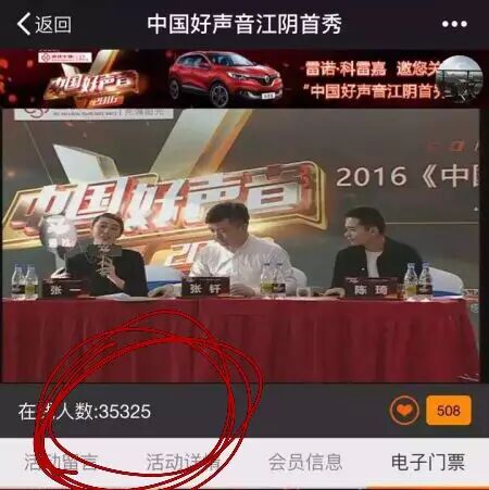 更厉害的是,本次海选是“最江阴”微信公众平台同步直播的哦!!!而在线收看人数最高达到了35588人!!!没有看到的人是不是感觉像错过了几个亿一样!没关系,3月12日和13日,我们将有第二场海选,一样是微信同步直播,这一次可不能错过了,说不定你就能见证一个那英战队或者是纠结伦战队的选手诞生呢!!!