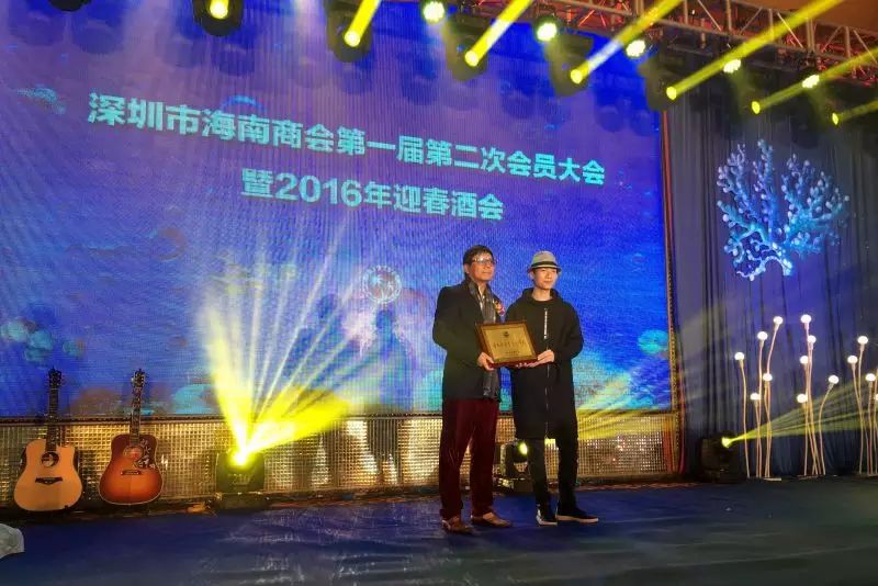 深圳市海南商会邀请到海南人的骄傲,著名人气歌手陈楚生为本场活动的特邀嘉宾,并授予“海南杰出音乐创作人”牌匾
