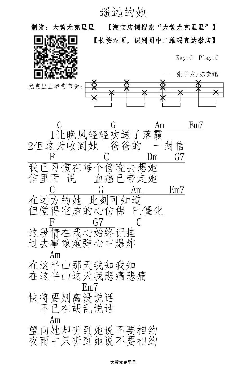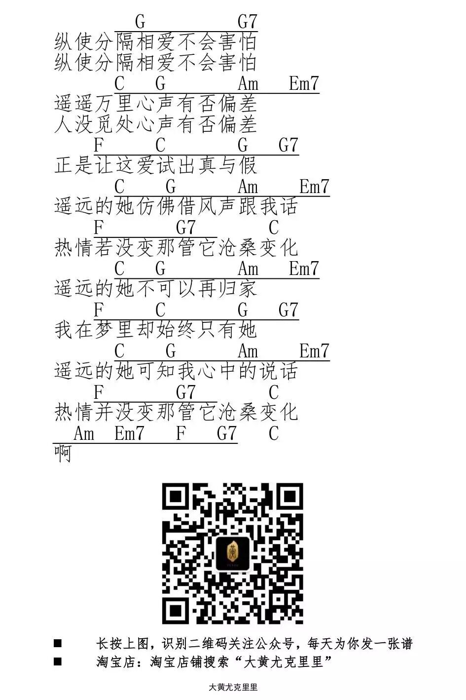 遥远的她——张学友/陈奕迅【每天一张尤克里里谱:第四百... 大黄尤克里里 港台男星 2016-04-30 23:28:41 571 创作不易,用心坚持,欢迎请BaGua喝几杯爱心咖啡!打赏并支持本文 打赏并删除本文 每天一谱好琴推荐淘宝店铺:搜索“大黄尤克里里”点击下方阅读原文,可直达微店 创作不易,用心坚持,欢迎请BaGua喝几杯爱心咖啡!打赏并支持本文 打赏并删除本文 感谢您的支持鼓励,我会继续努力的!文章地址:用户邮箱:打赏金额:USDT 请输入数字点击”去打赏“,即可进行打赏支持本文章哦 张学友 About the Author 大黄尤克里里 功能介绍:六扇门里太龌龊,不如四根弦上取磊落. Related Posts 换——金玟岐【每天一张尤克里里谱:第一千四百零九首】 2019-03-14 22:52:19 小白——周柏豪【每天一张尤克里里谱:第一千三百七十八首】 2019-02-11 23:15:45 跳舞吧——陈绮贞【每天一张尤克里里谱:第一千三百六十八首】 2019-02-01 20:38:48 短发——梁咏琪【每天一张尤克里里谱:第一千三百六十一首】 2019-01-25 23:11:31 别说没爱过——韦礼安【每天一张尤克里里谱:第一千三百零六首】 2018-12-01 18:47:39 发表评论