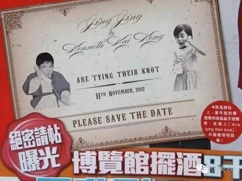 八年恋爱长跑后,2012年两人步入婚姻的殿堂,当时给嘉宾的请帖印着霍启刚和郭晶晶的童年照,两人拿着电话情牵一线,通知大家我们要结婚了~