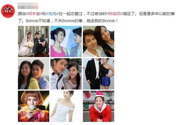 说的好像是当时陈庭妮插足鬼鬼和胡宇威之间的感情,这件事甚至当时报纸都报道过