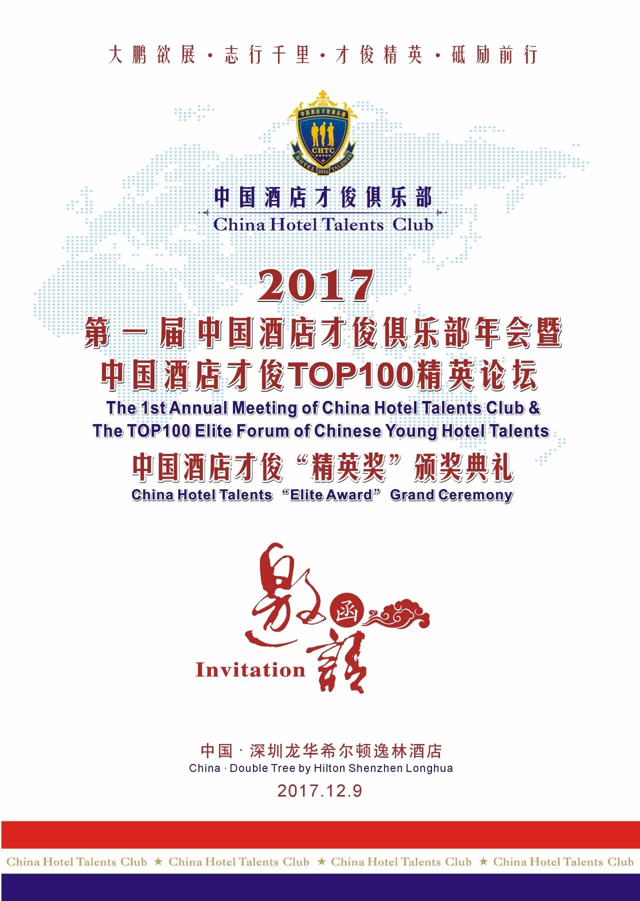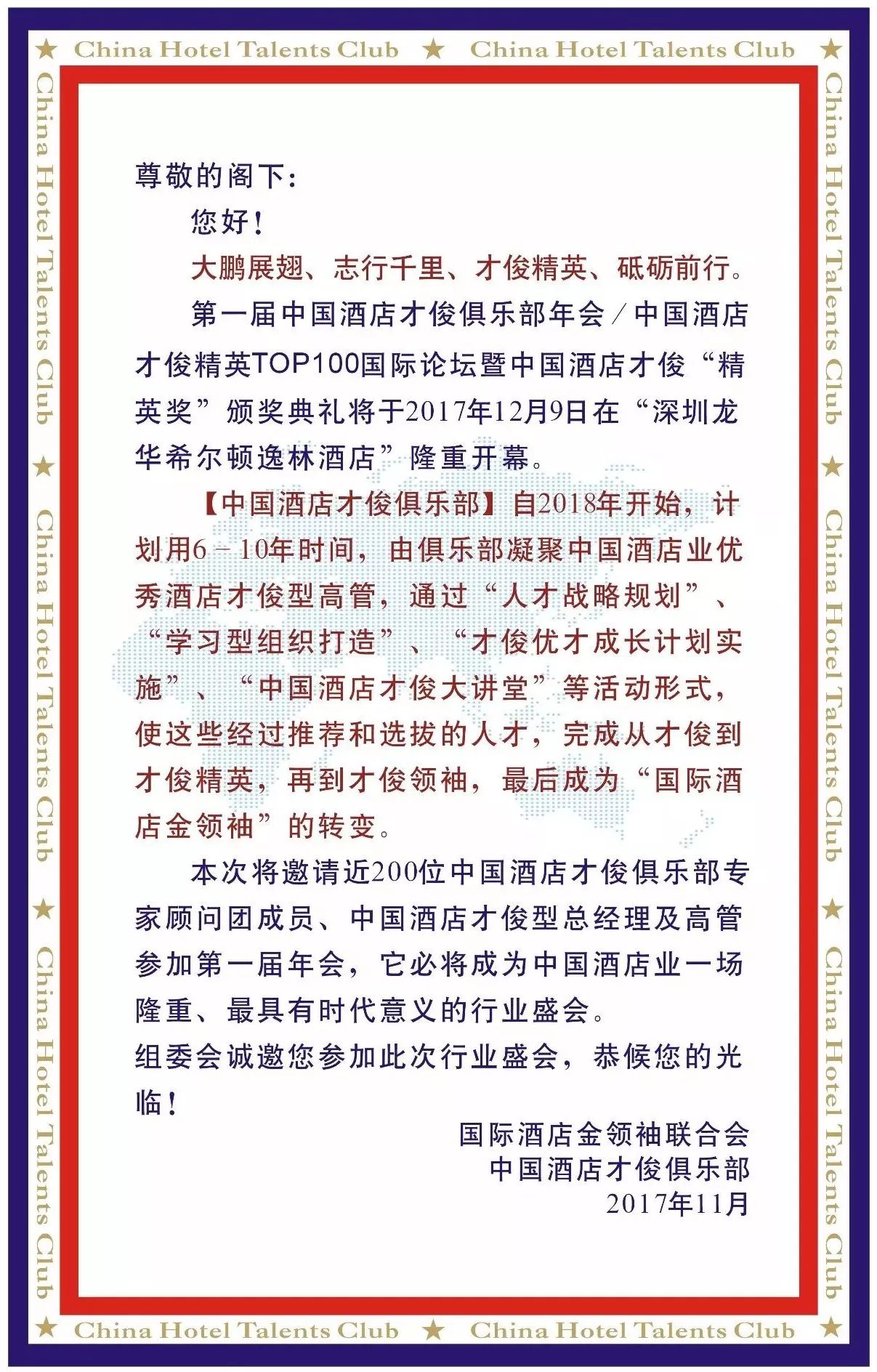 2017年12月9日,中国酒店才俊俱乐部期待与您相聚鹏城,见证中国酒店业才俊精英盛会!