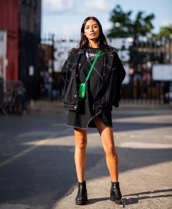 不论是短裙搭配短靴还是牛仔搭配短靴都增添了一份酷美的feel