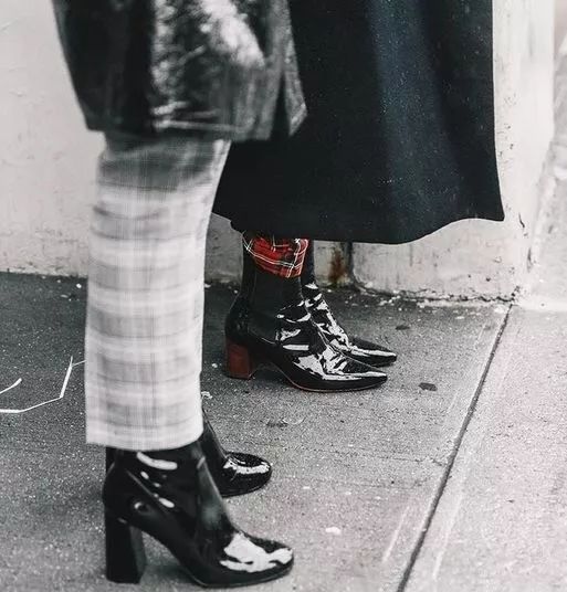 如果不知道选择什么颜色,简单的黑白漆皮短靴即可