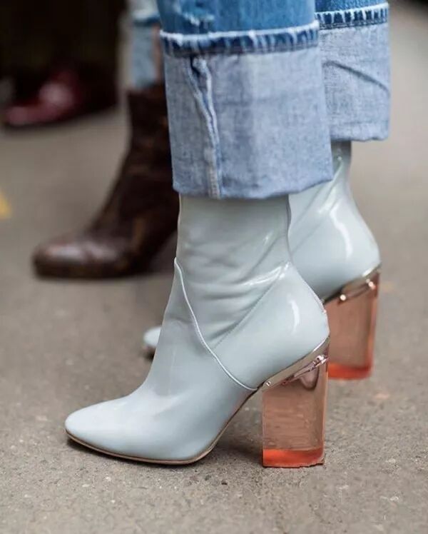 还有这类不同色的粗跟短靴也是比较特别的设计,够时髦的妹纸也可以尝试哦~