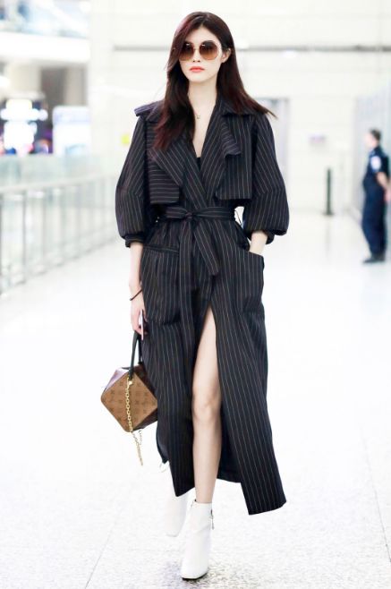 漆皮的短靴搭配长风衣也很时髦,特别是皮质的风格会更帅气
