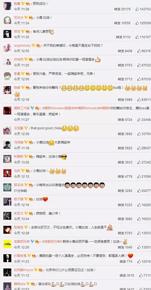 本来开个演唱会,有艺人来送花篮送祝福也是很常见的事,“互助互爱共同成长”每个混圈子的人都懂这个道理。不过我随便刷了刷帮鹿晗应援的人..... 这是把娱乐圈的半壁江山都拉来了吧!