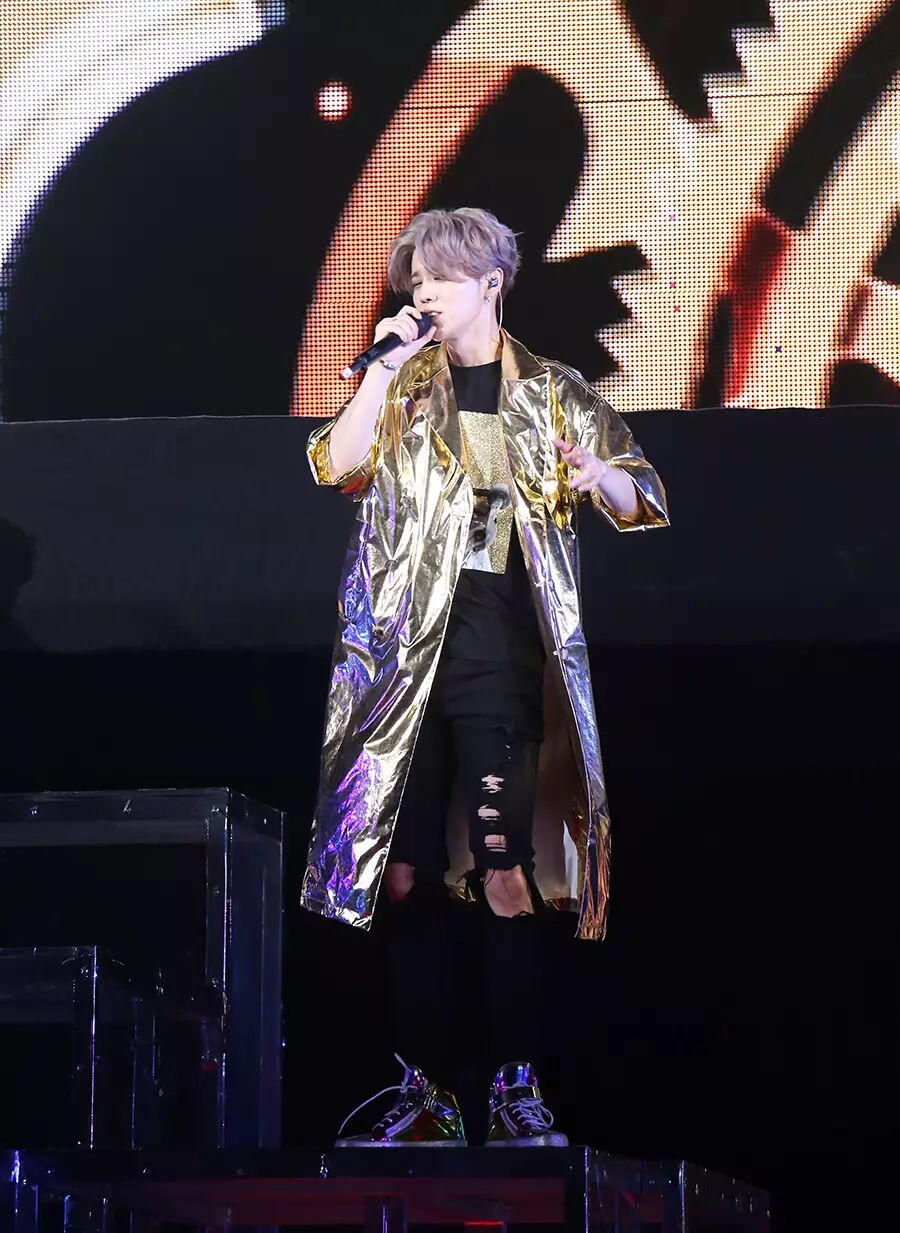 这次演唱会,鹿晗一口气换了5套服装,每一件都亮瞎眼,比如下面这件....我真的以为是穿着金大褂的金角大王要出来了。