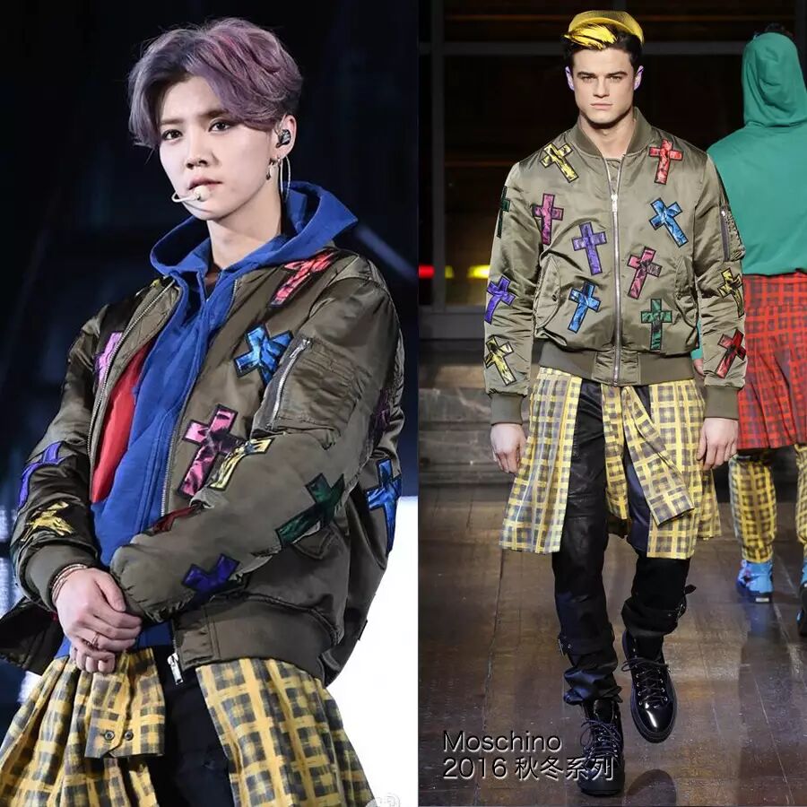 还有这一身好看的棒球外套,来自Moschino~