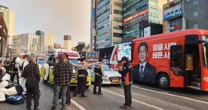 而在这起事故发生一个小时之后,也就是15日下午4点43分左右,在江原道原州的安哲秀竞选车上也发生了类似事故,事故导致1人生命垂危。