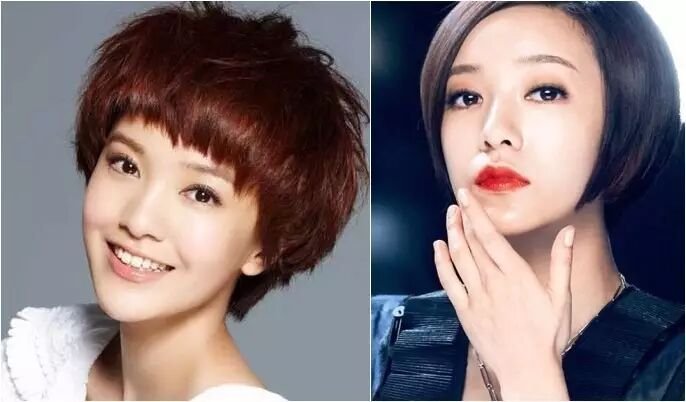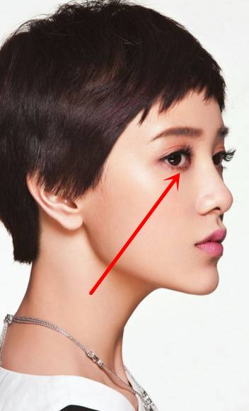 由于短发造型恰当地遮挡住了上庭的部位,露出中庭和下庭,人们视觉下移,关注点会自然地落到她的五官以及尖下巴上,所以辨识度也随之提高了上来