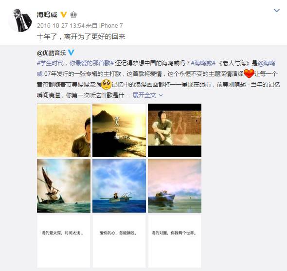 或许,对于许多人来说海鸣威是娱乐圈里属于歌红人不红的那一类人,但并不是因为他不够出众没有好作品,只是他一直执着于自己喜欢的事情,沉寂并不意味着消失,只是为了更好的沉淀自己,然后再出发。正如他自己说道,十年了,是为了更好的回来。
