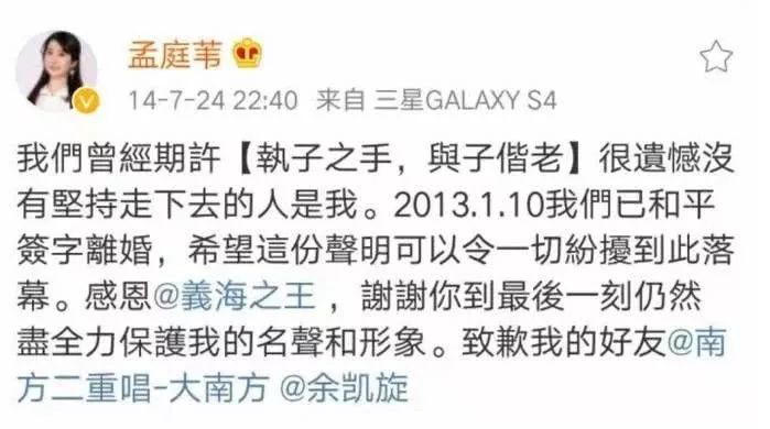 3、从离婚的条件来看,孟似乎是模糊地默认了,而离婚时的张志鹏对她名声的保全,代价就是可以让他继续替她接演出job,收入五五分。