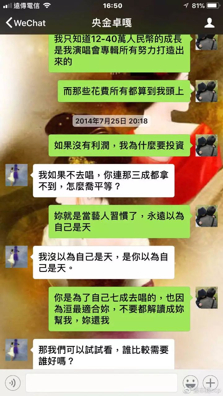 这是孟庭苇工作室发出的关于和张志鹏的聊天记录