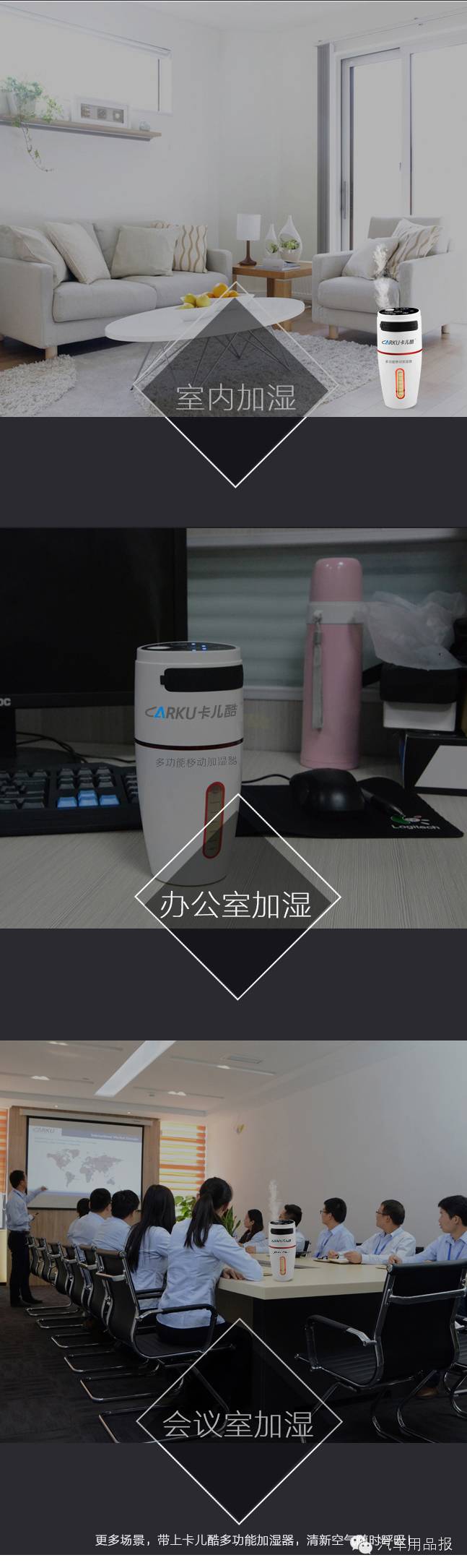 随着市场改变,消费者对于加湿器的需求开始由基础的加湿逐步向美容、无辐射、零污染、低噪音、智能化到更多功能符合消费者的多元化转变。这款将“加湿器+汽车启动电源+移动电源”为一体化的移动智能加湿器,由汽车应急启动电源全球首创者——卡儿酷(品牌代言人樊少皇)为年轻人车族打造的创新产品。