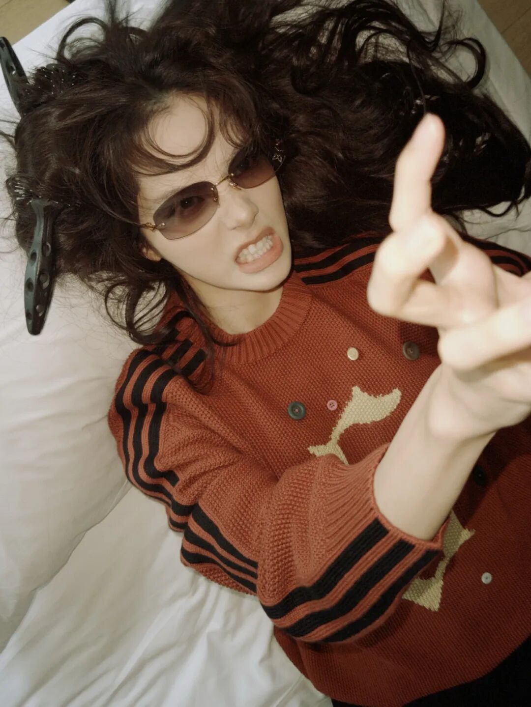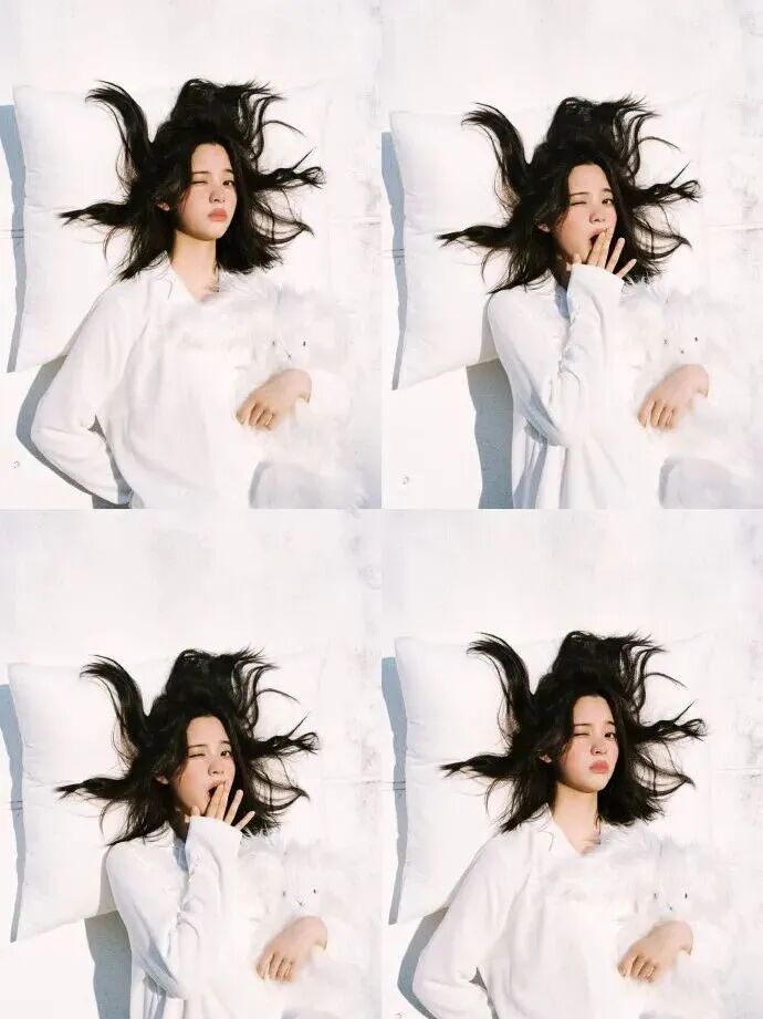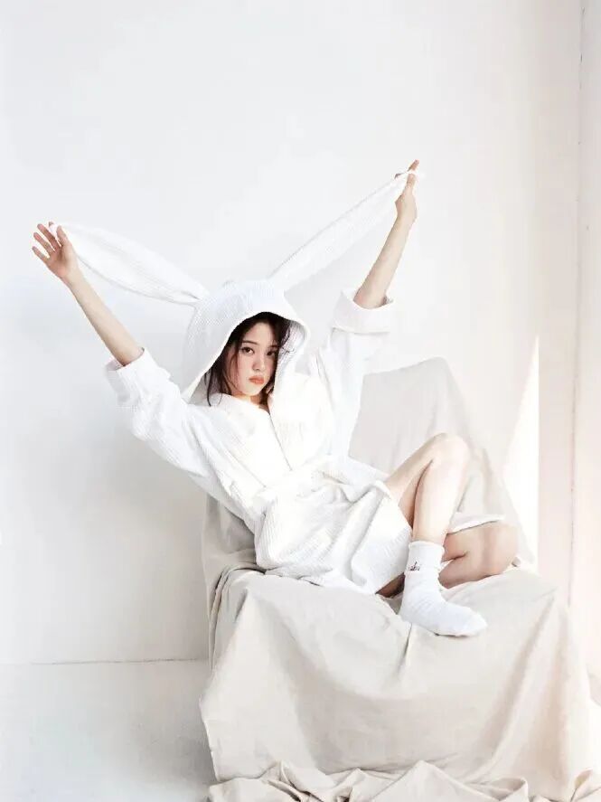 系列画报也拍出了极强的生活气质:纯白睡衣、绵软大床、慵懒沙发——光是画面就让人想立即窝在家里拍一组“宅家大片”。