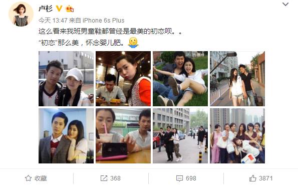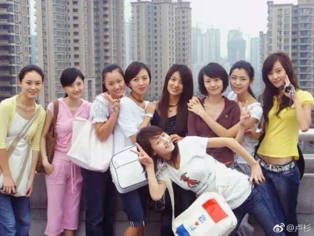 另外一位“金花”卢杉更是直接在微博上发了几张大学时她跟同班男生们一块儿玩的照片。