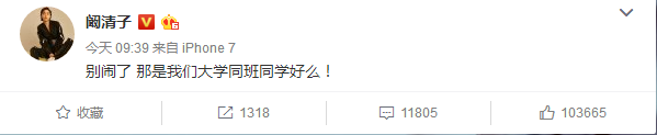 这一次郑爽“初恋男友”被曝光,阚清子也是第一个站出来辟谣的,说那只是她们的大学同学。