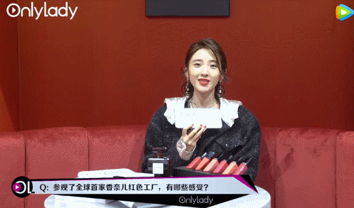 唐艺昕:首先进来会感到挺温暖的,因为满眼都是红色主题嘛~感觉进入到一个每位女孩都会喜欢的梦想之家,因为有各种各样的口红嘛。我也从红色工厂中了解到口红的更多知识,比如口红的颜色分类和制作工艺,也发现了一些很有趣很有创意的设计,比如说看到盛满各式颜色的大桶,挺想搬回家里面去的,我相信很多女孩看到都会感觉爱不释手吧!