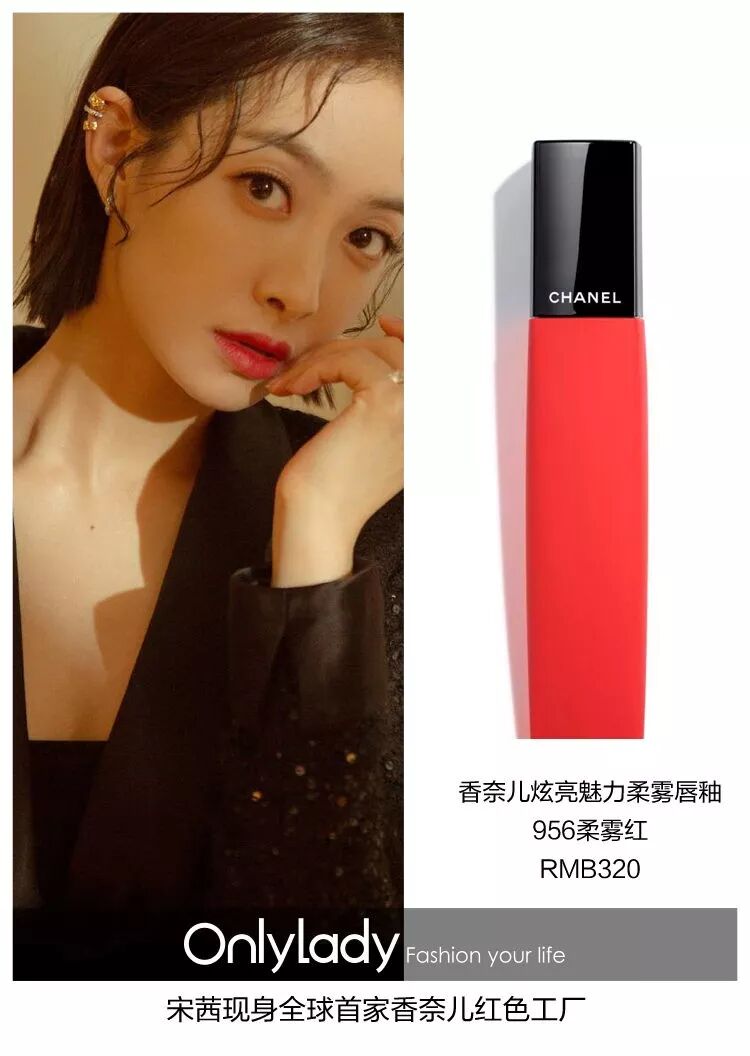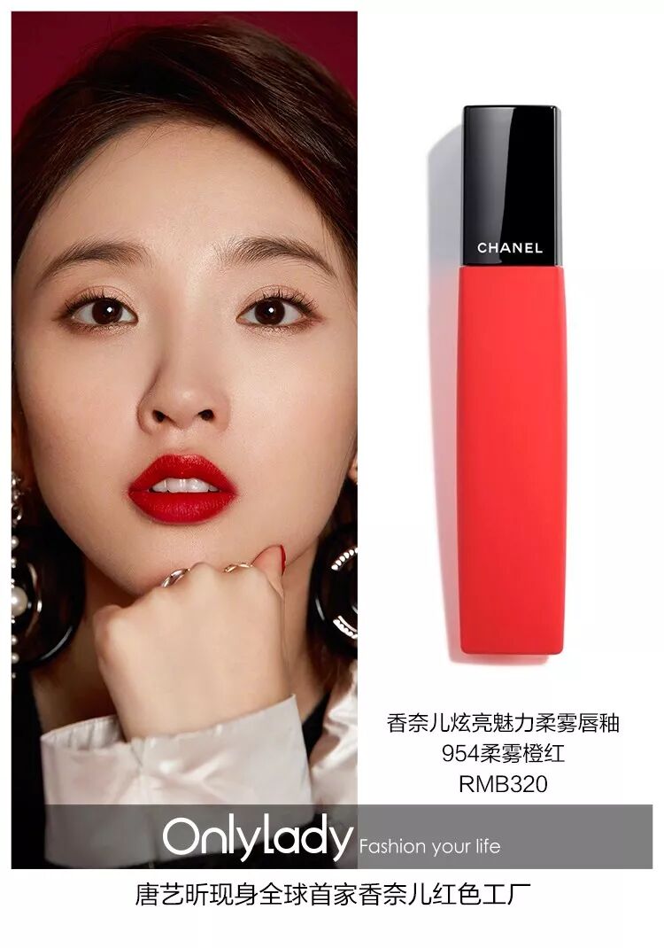 香奈儿炫亮魅力柔雾唇釉956柔雾红色, 雾面口红让整个妆容看起来更加有质感。