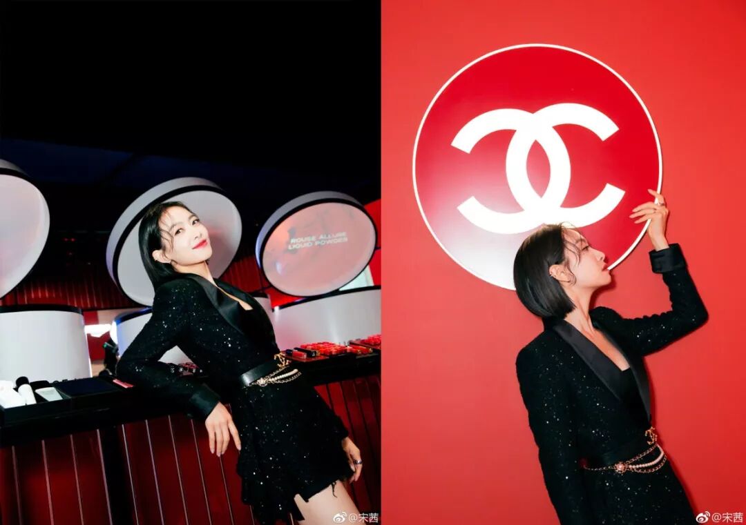 确认过眼神,是霸气光芒茜没错了,身着CHANEL 2018秋冬高级成衣系列亮片刺绣外套搭配同系列腰带及高级珠宝COCO CRUSH系列戒指和耳环,用“光芒四射”来形容也是不为过了。