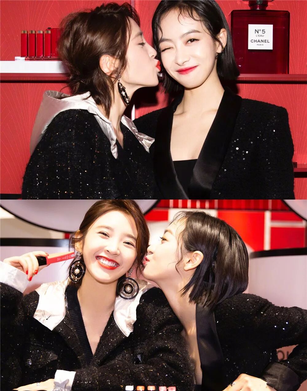 这场面是不是很熟悉?O姐没说错吧!人俩感情好着呢,姐妹装、姐妹短发还有姐妹同款红唇~