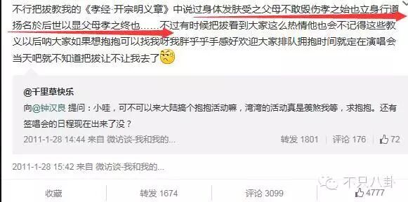 你还曾公开说:“我的岁数和经历不可能没有自己的感情生活,但是不想用这些来炒作。喜欢我的人还有很多是很小很年轻的女生,不想因为自己的行为给她们误导,这是作为一个公众人物基本的责任。至于我喜欢谁,只要对她有交代就可以了。”
