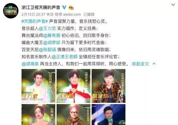 所以,蓝台也将现有的节目《梦想的声音》升了级,推出了这档由知名歌手参赛,知名评委点评的节目,《天赐的声音》。