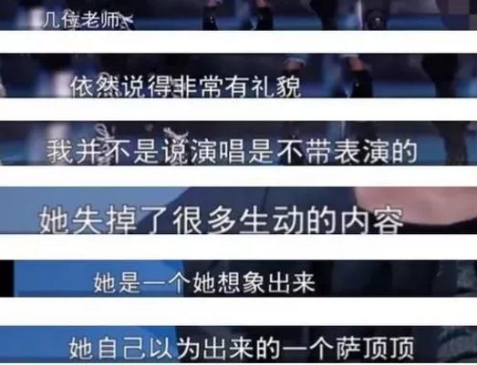 几位老师的评价依然很有礼貌,但是你们忽略了一点萨顶顶的表演是想象出来的,她表现出来的是自己以为出来的萨顶顶。