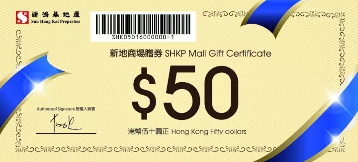 即可获得价值HK$50新地商场赠券