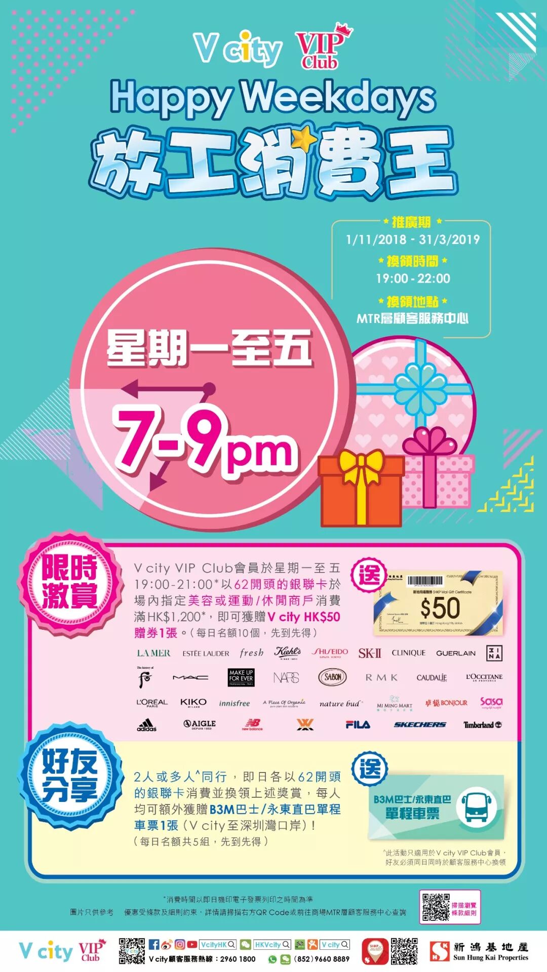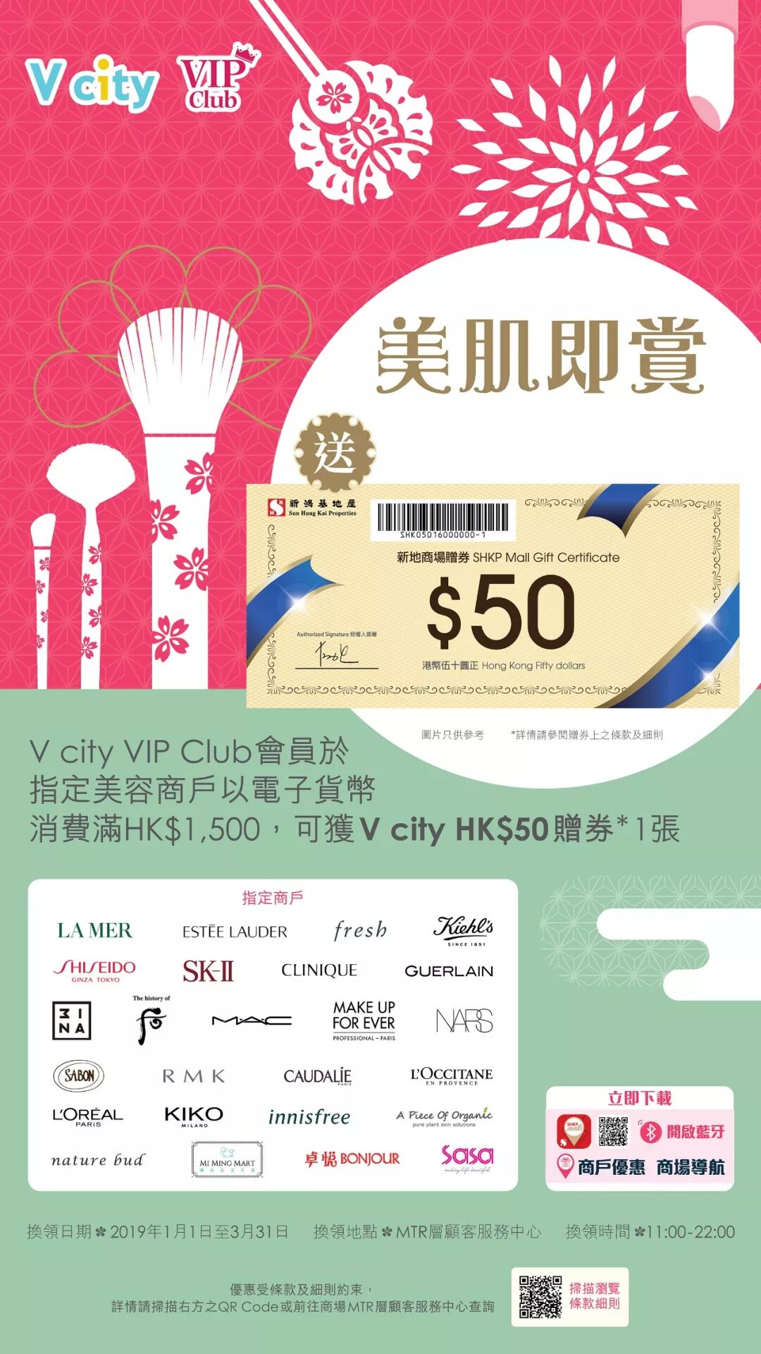 即可获V city $50赠券1张