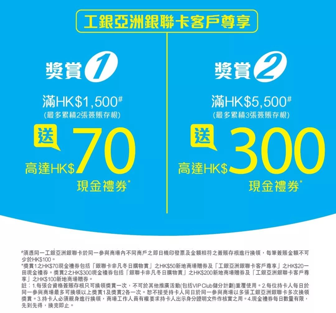 单一签账满HK$300,